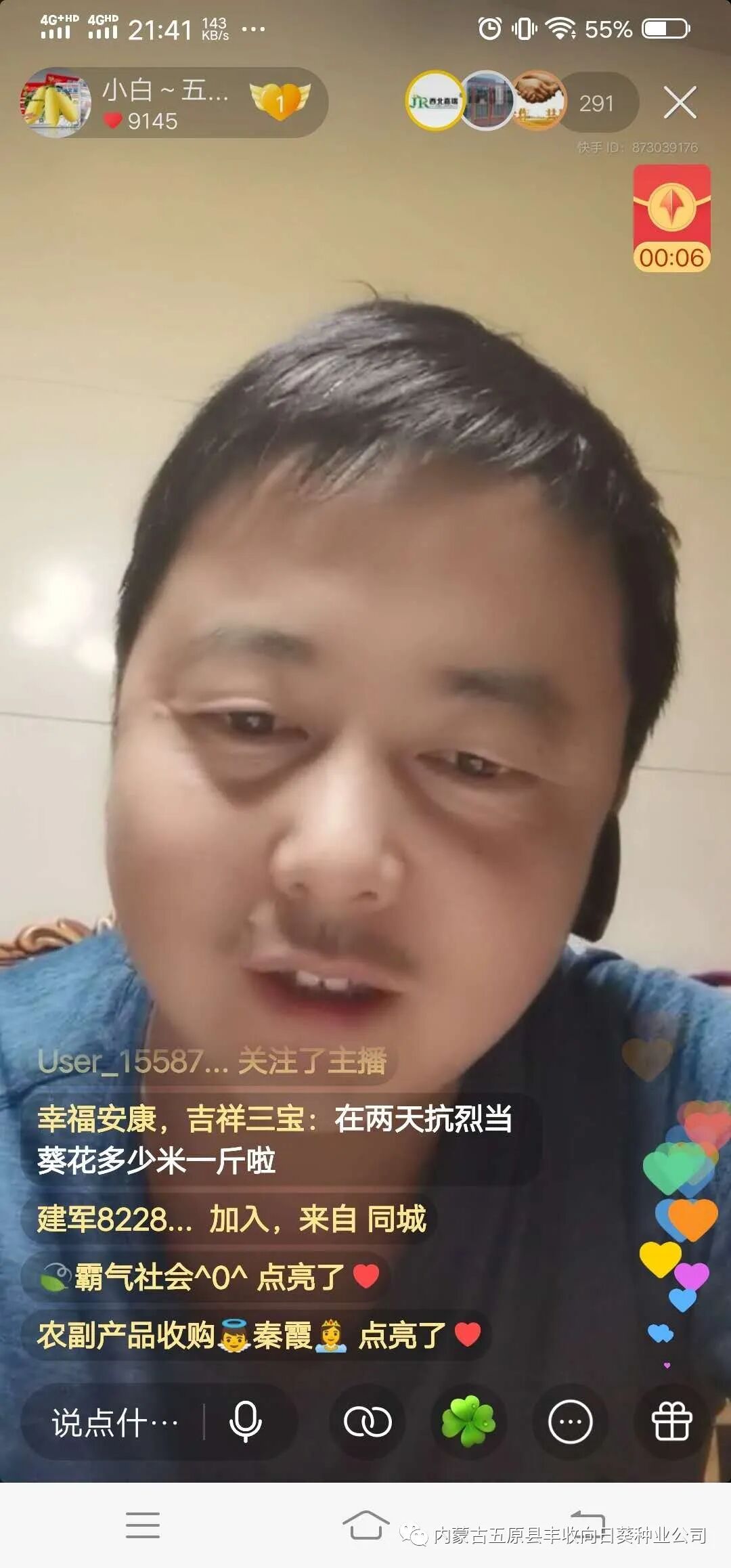 现在公司所有工作已全部落实到实体工作,直播不固定时间与大家见面,敬请继续关注公司主播、产销人员快手号和电话号码,为您的安排春耕作业和商品对接!